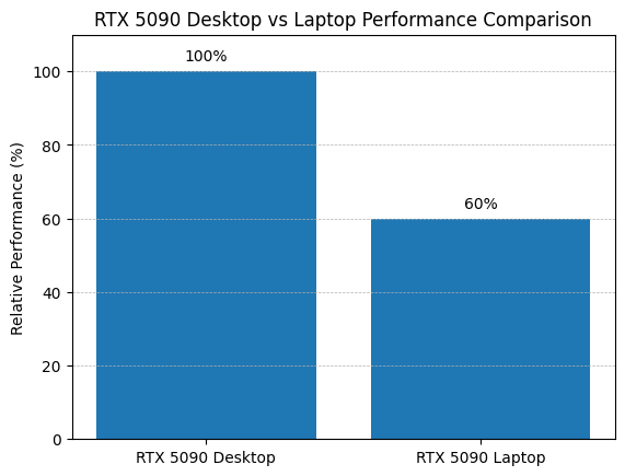 Before getting into details, there’s something important to keep in mind. Even if you’re buying a powerful laptop for work or gaming, the performance difference between a laptop RTX 5090 and a desktop RTX 5090 is huge.