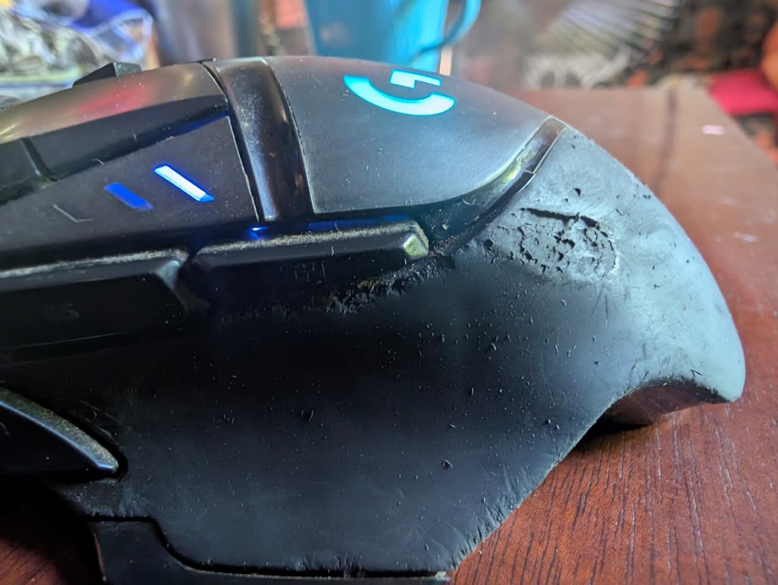 In the photo, you can see that if I zoom in, the wear on the left side rubber is even more noticeable. This made me question a bit how good its durability really is, even though it’s one of the most popular gaming mice.